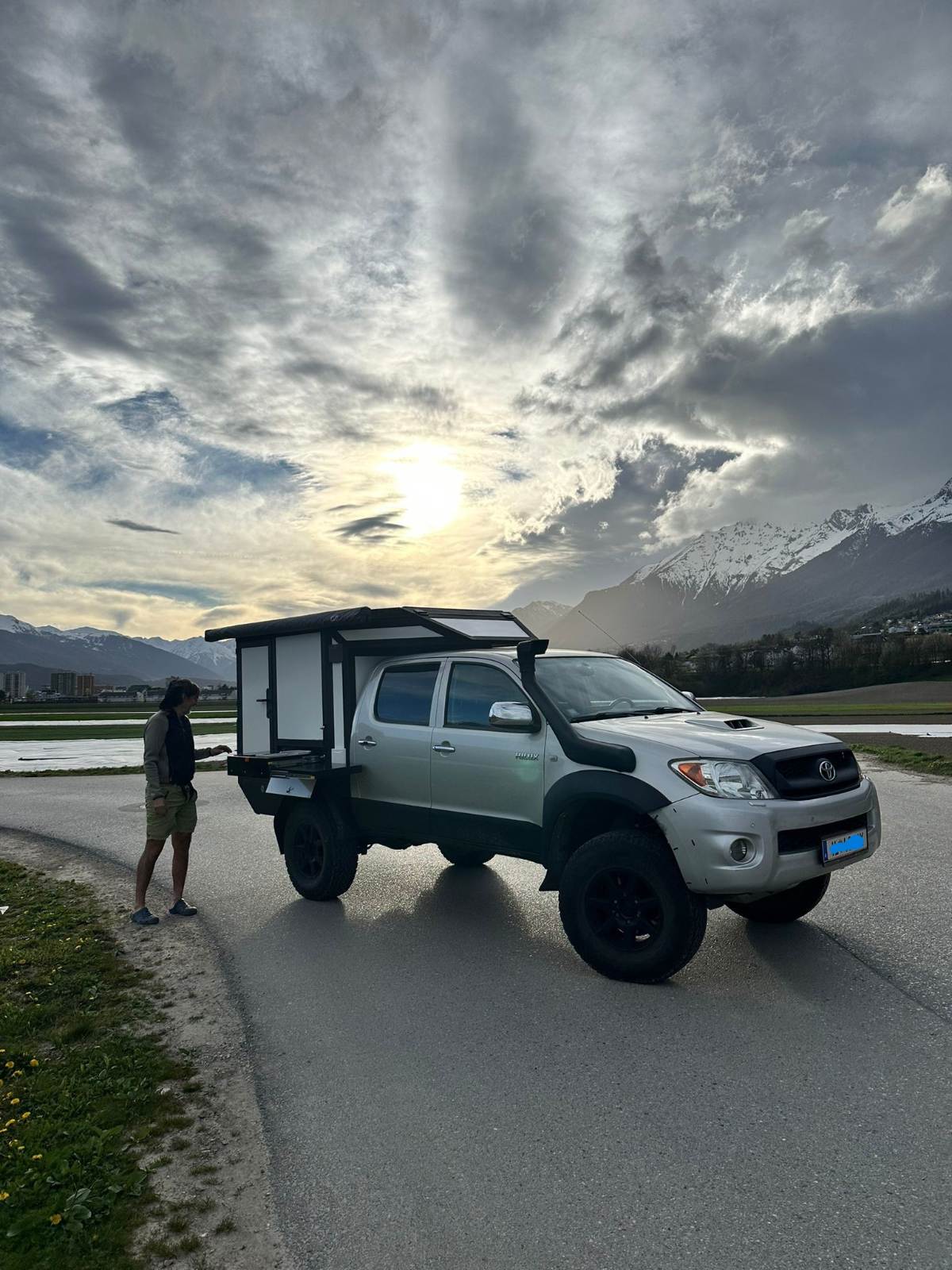 Aber ist eigentlich ganz easy...Pritsche so tief als möglich, aber dass genug verschränkung ist und der diesel noch abwärts in den Tank rinnt.(Höhe war bei mir von uk.fenster bis ok pritsche 77cm, dann geht sich alles noch sehr, sehr knapp aus) dann fenster raus rahmen rein 50x77...bei kabine ca. 3-4 cm größeren Rahmen mit vordach ca. 5 cm über rahmen von kabine und beide Seiten mit hohlgummidichtung versehen. Dann hat alles genug Luft und Spiel max.verschränkung und max.beladung