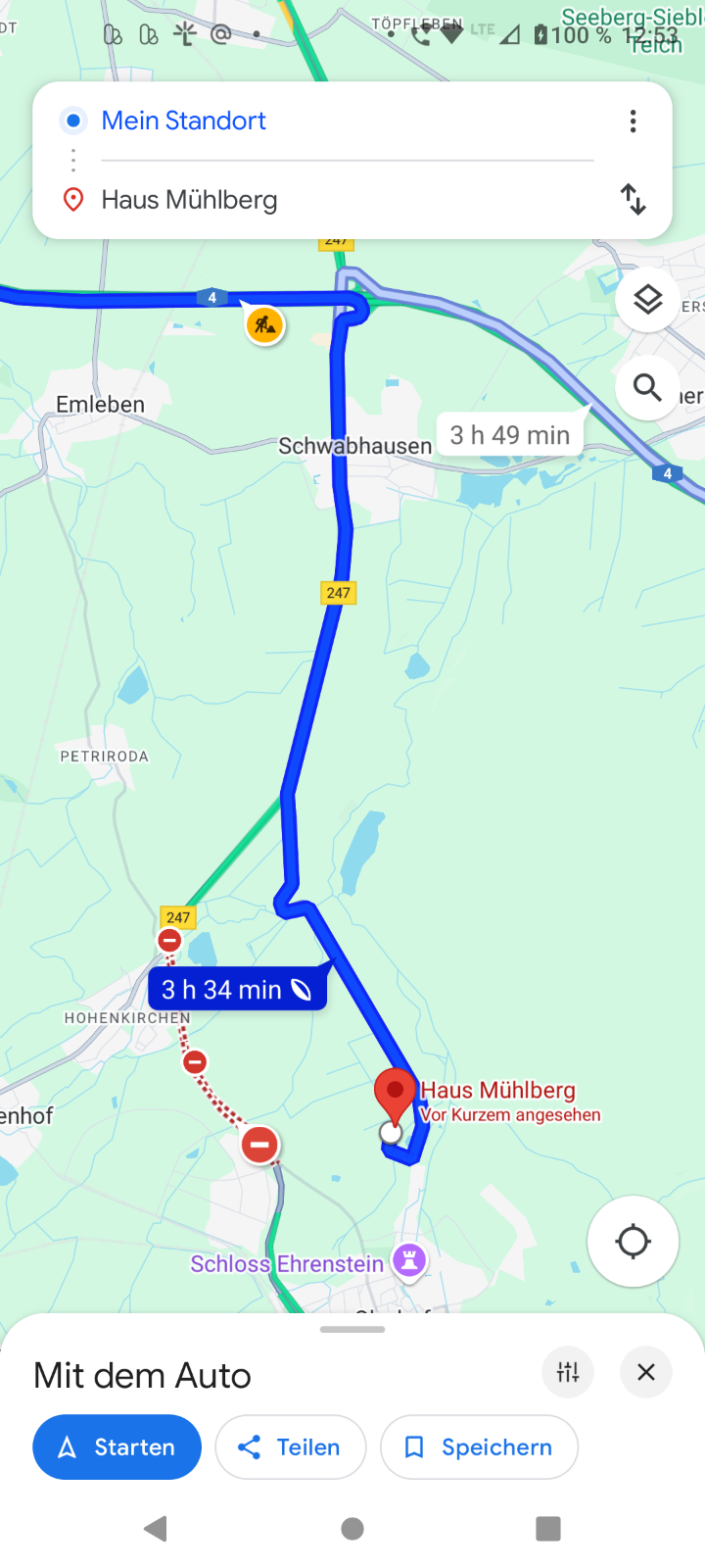 Die B 247 von Schwabhausen nach Ohrdruf ist ab Hohenkirchen wegen Bauarbeiten voll gesperrt. Ein Umleitung ist ausgeschildert. Der sollte auf jeden Fall gefolgt werden: https://maps.app.goo.gl/RrkvJD9H6efdif888