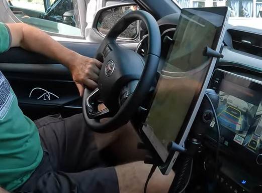 Bei uns hängt das Navi dort wo früher der Innenspiegel war. Die Halterung ist aus schwarzem ABS gedruckt.