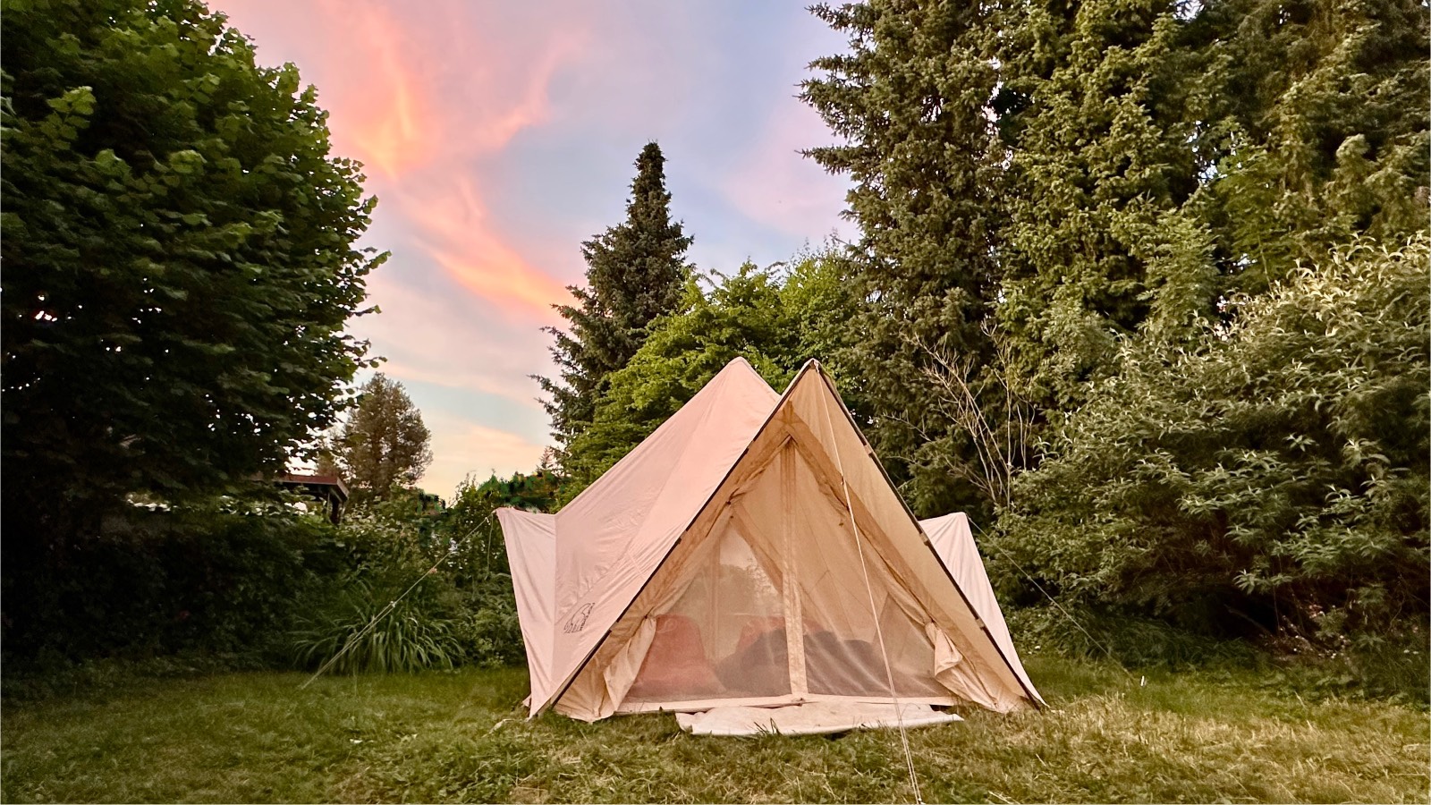 Na wenn dann alle anderen weg sind, schlag ich das Zelt in meinem Garten auf: Kühlschrank, Klo und Dusche nicht weit weg und ich hab trotzdem meine Ruhe…