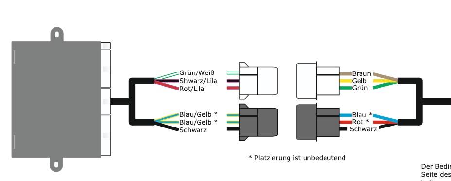 Sag mal, welchen Draht meinst Du genau (bzw was ist mit der zweiten Seite gemeint?). Könnte man nicht einen Schalter dazwischen setzen, nach dem Motto "offroad-Modus" Schalter deaktiviert das Signal?Odessa hat geschrieben: 7. Oktober 2024 20:20Wenn ich tatsächlich auf die Autobahn fahre, wird der lila Draht auf der zweiten Seite auch in die Wago-Klemme gesteckt.