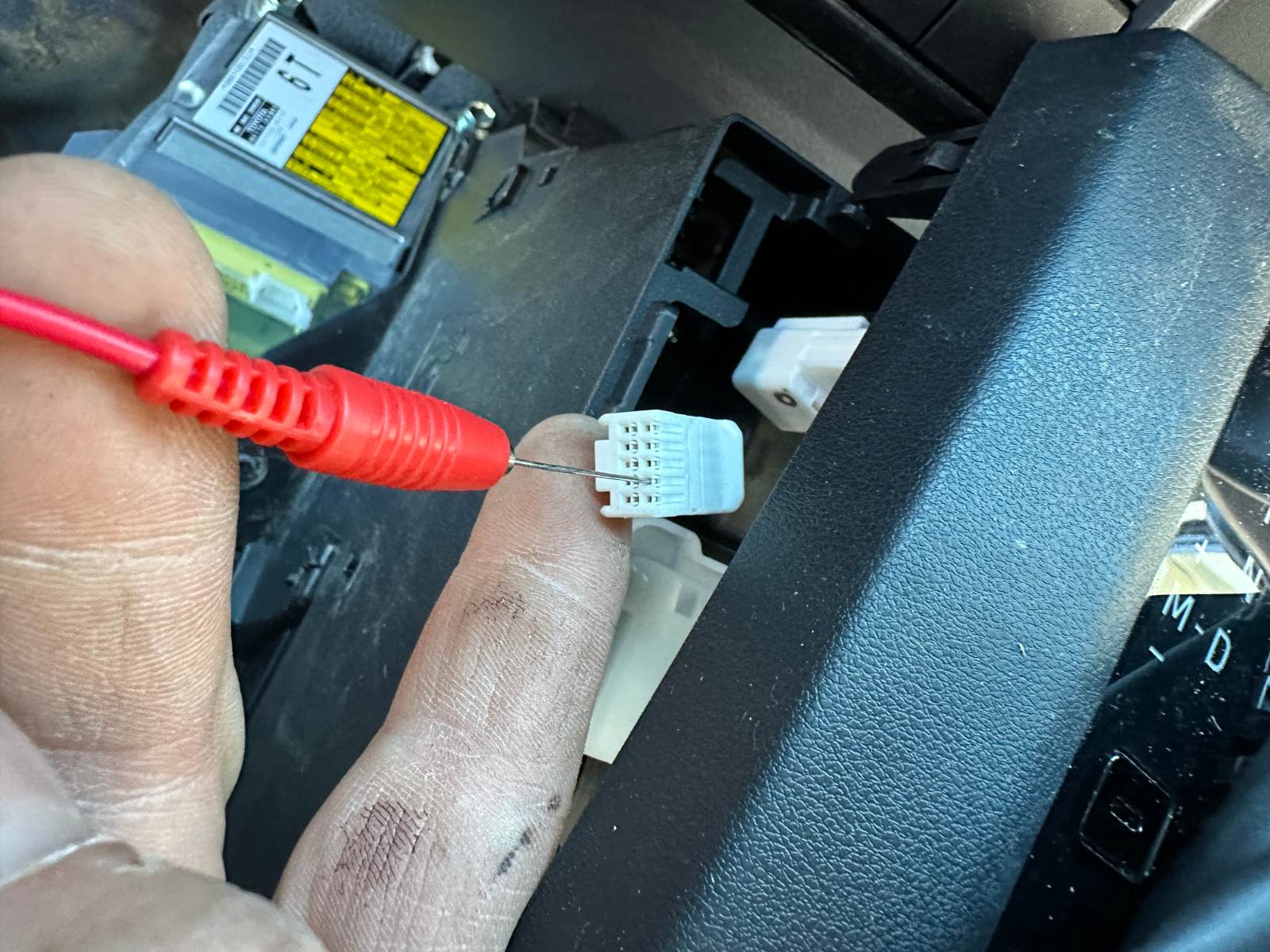 Am Ende hab ich einen Stecker im Automatikwahlhebel gefunden der die LED´s Ansteuert. Dort hab ich die Zuleitung für die R LED gesucht und gefunden dort kommen 12V an . Der Stecker hat leider keine Toyota Nummer aufgedruckt....