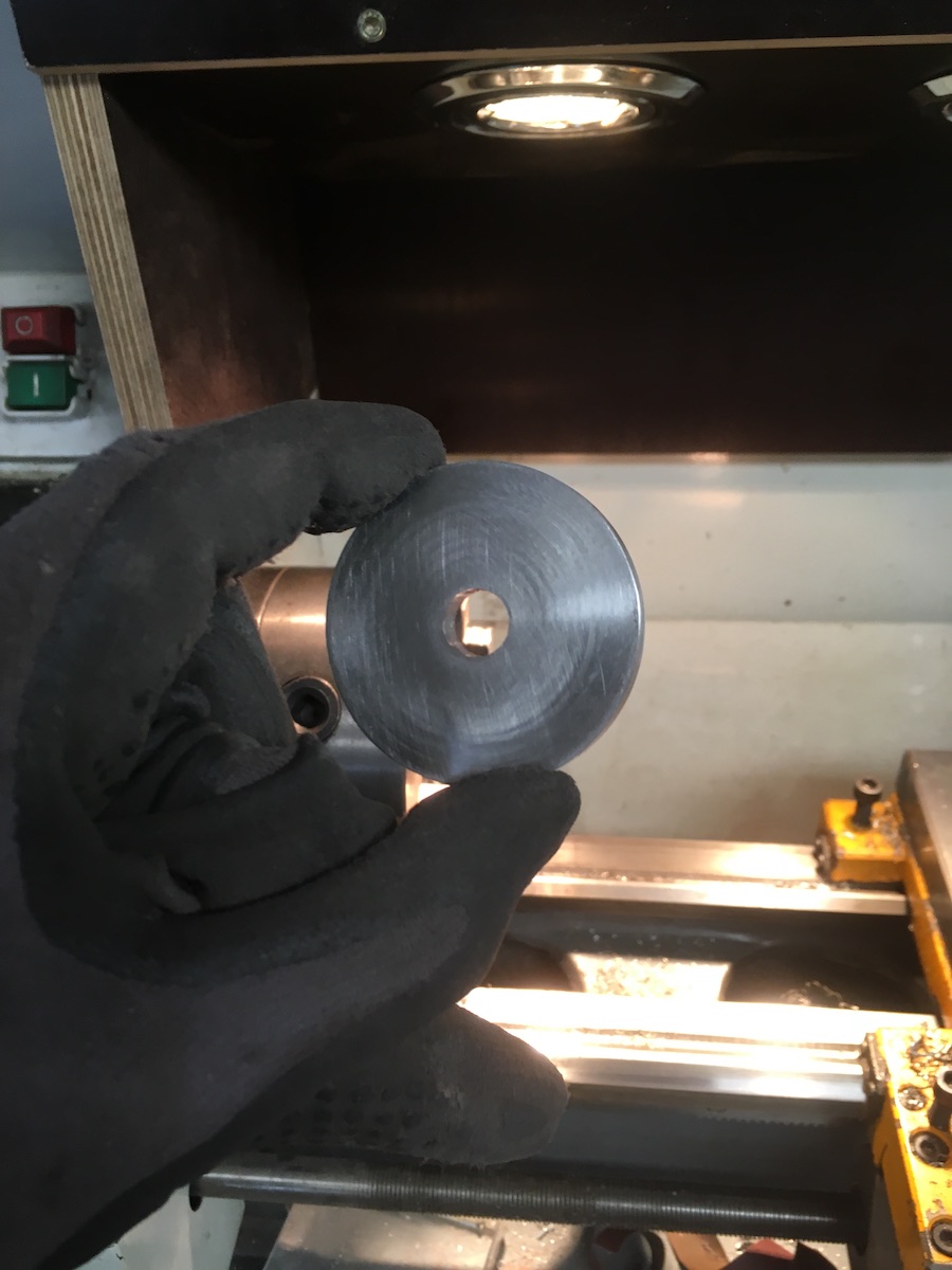 VA Unterlegscheibe auf der Drehbank selbst gemacht um die Kabine mit dem Lux zu verbinden ;-)