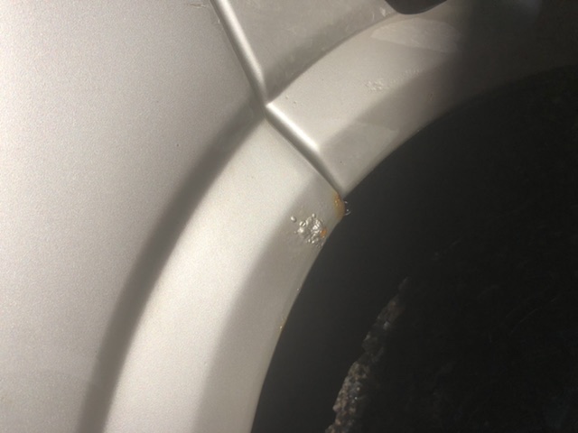 Das ist eine Durchrostung von innen, weil der Hohlraum erstens von der undichten Punktschweißnaht (Radhaus) mit Wasser versorgt wird und andererseits wegen zu geringer Luftbewegung nicht abtrocknen kann.