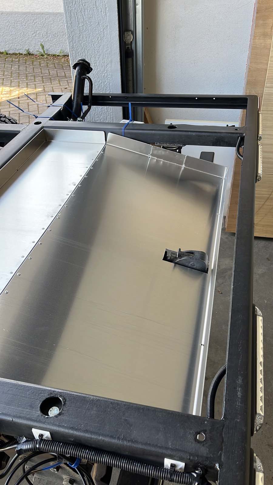Bei der ersten Kabine kam das Plattenmaterial von Paneeltec. Nach dem sich ein paar Lebensumstände geändert haben und wir länger unterwegs sein wollten, haben wir noch einmal neu gebaut. Da kamen die Platten aus Tschechien, die Firma gibt es aber nicht mehr.