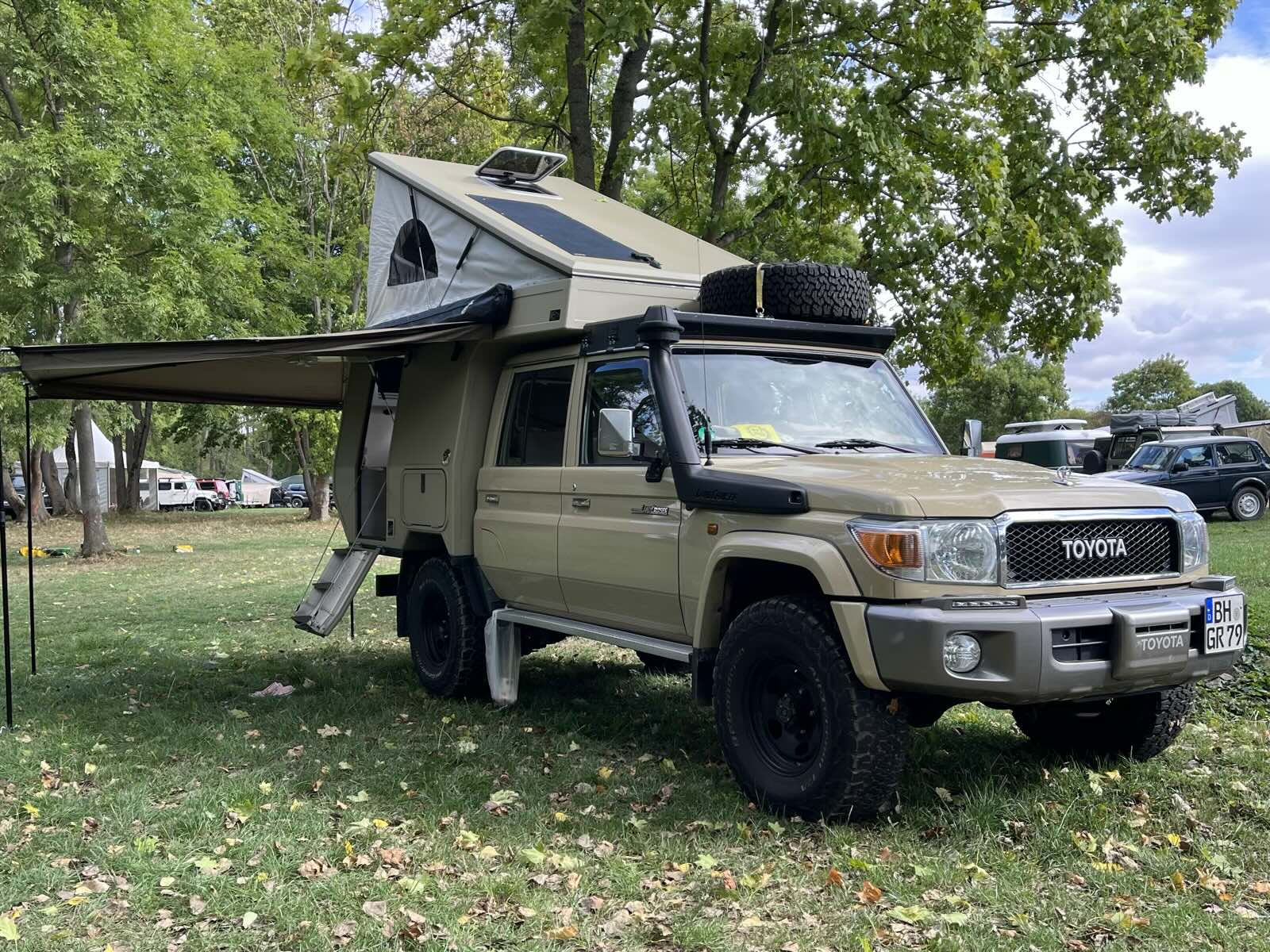 Hilux 2.4 xtracab duty, 235/80R17, Snorkel, Ironman HD, Tempomat, Zusatztank, Dachkonsole, Alu UFS und eine graugrüne Wohnkabine.
