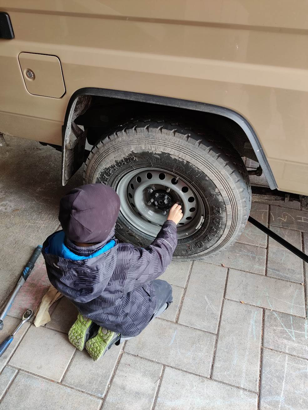 Danach wird das Thema Schnierle erstmal aktuell, da bin ich noch nicht weitergekommen. Für meine Ausrüstung brauch ich aber auch einen anständigen Boden, nicht nur zum Kindertransport. So ist das nix mit den diversen Kisten, die lustig auf der Plastikmatte herumrutschen.