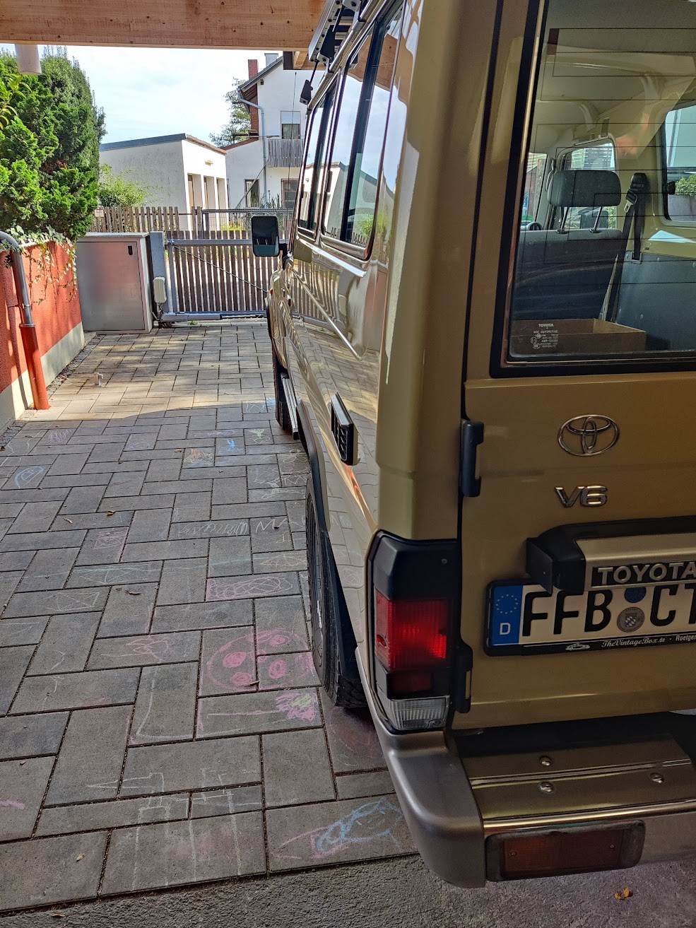 an der Tür müssen noch die Überreste der Frontrunner Leiter beseitigt werden und die Spezialisten haben tatsächlich die Kennzeichenhalterung mit Karosseriekleber am Lack geklebt :evil: Punkte, die man bei der Besichtigung natürlich nicht auf dem Schirm hat...