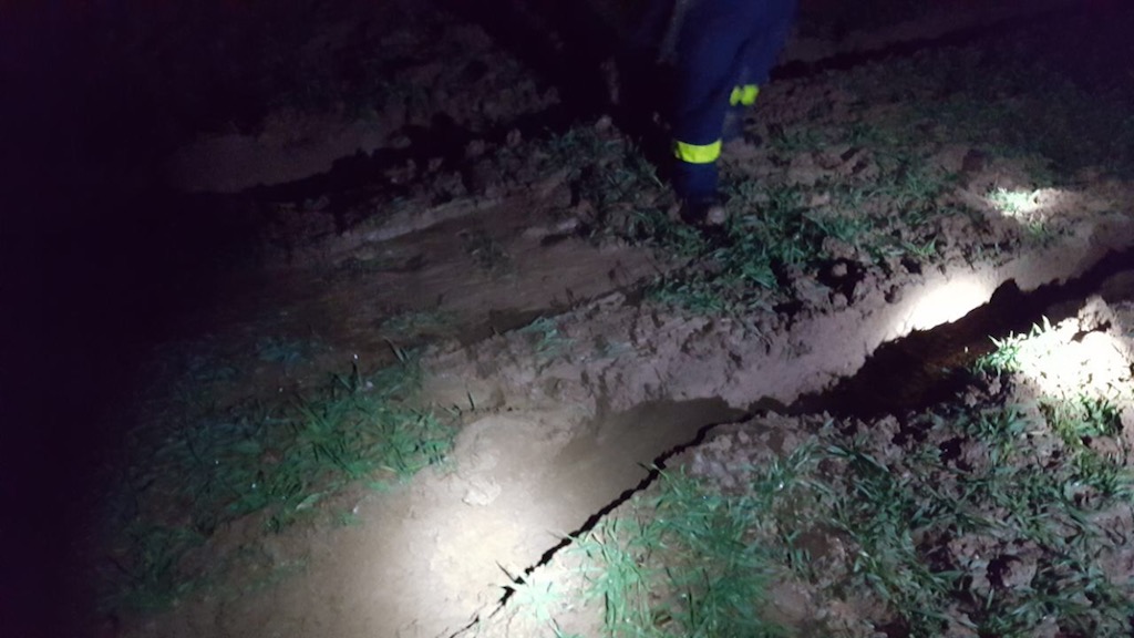 Einer von den Jungs hat allerdings versucht, die Spuren auf dem Acker in der Dunkelheit zu fotografieren, nachdem der Hilux draussen war.